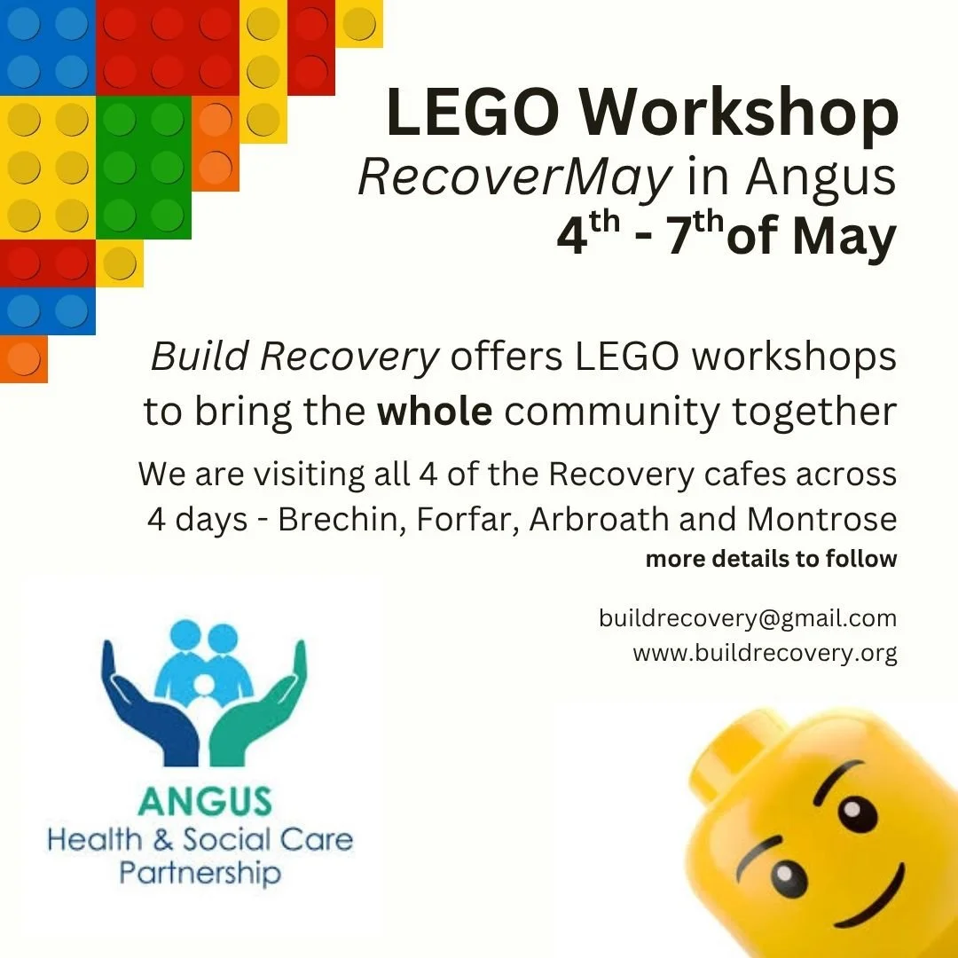 We’ll be visiting recovery cafés across Angus, bringing creative, relaxed LEGO sessions that are all about connection, confidence and community.